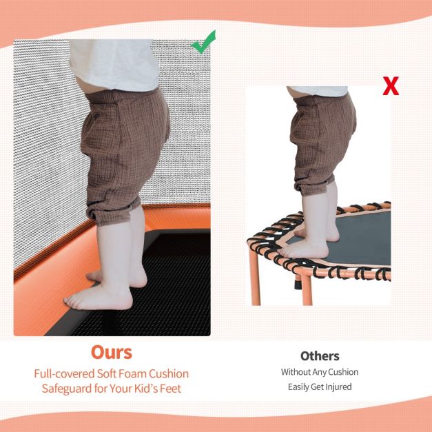 Safety First: We always keep your child's safety in mind. The soft foam cushion covers all the springs so that it prevents your kid’s hands or feet from being caught in the gap. Moreover, the upper pipes are padded with soft foam as well, ensuring your child’s safety.